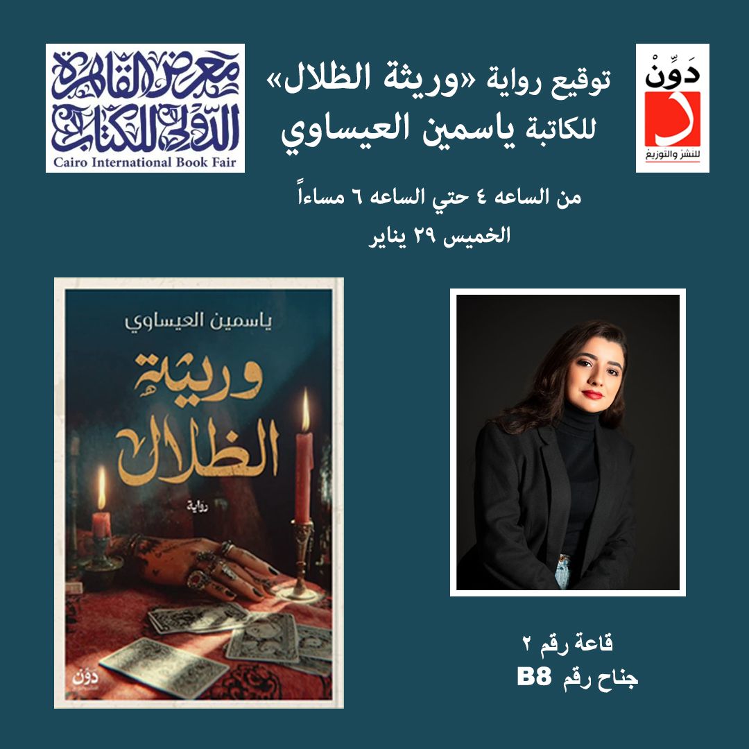 يستضيف معرض القاهرة الدولي للكتاب هذا العام الكاتبة المغربية المقيمة في الإمارات ياسمين العيساوي، في جلسة توقيع استثنائية لروايتها الجديدة «وريثة الظلال»، وذلك يوم الخميس 29 يناير من الساعة الرابعة عصرًا حتى السادسة مساءً، في جناح دار التدوين العربي، قاعة 2، جناح رقم B8.
