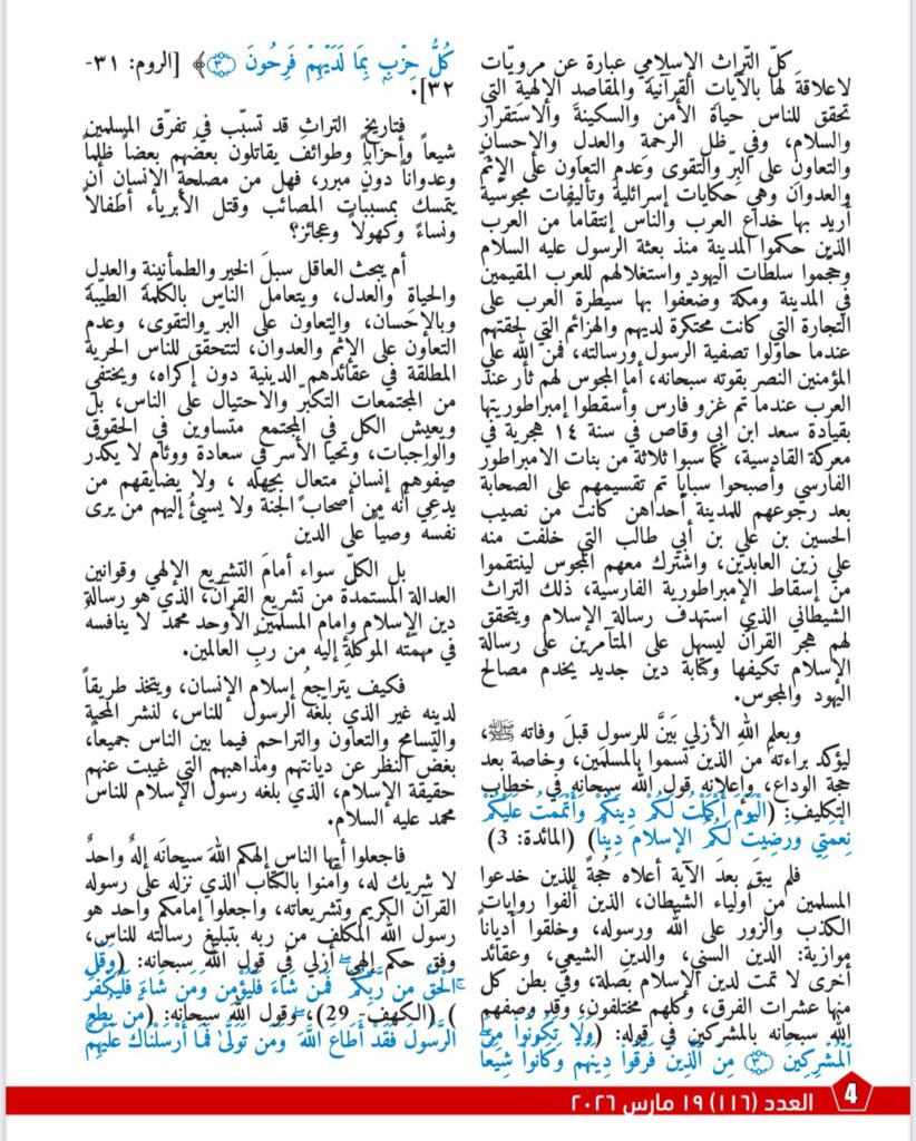 فيما يتناول مقال «الوعي القرآني طريق مقاومة التفرّق المذهبي»
