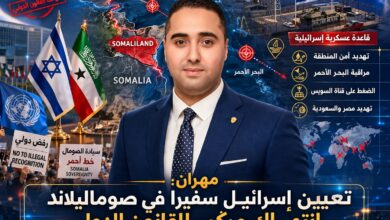 مهران: تعيين إسرائيل سفيراً في صوماليلاند انتهاك مركّب للقانون الدولي وعدوان صارخ على سيادة الصومال خبير دولي: تعيين سفير لإسرائيل…