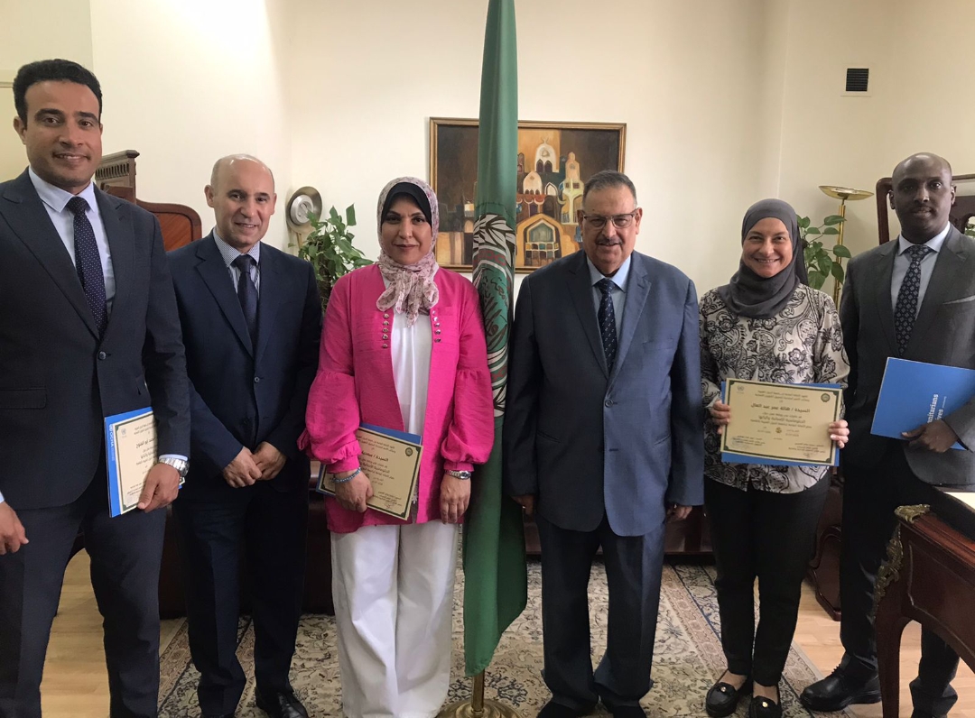 سلم السفير خليل إبراهيم الذوادي الأمين العام المساعد رئيس قطاع الشؤون العربية والأمن القومي لدى جامعة الدول العربية شهادات المشاركة في ورشة حول ” أسس الدبلوماسية الإنسانية والإطار القانوني المنظم لها ، وكيفية التعاون مع البيانات المعقدة ذات الطابع الإنساني ” لعدد من موظفي القطاع وبحضور المدراء المعنيين .