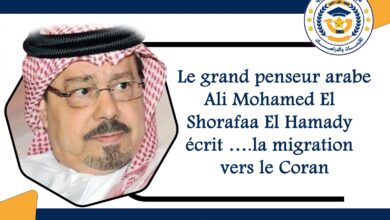 Le grand penseur arabe Ali Mohamed El Shorafaa El Hamady écrit ….la migration vers le Coran