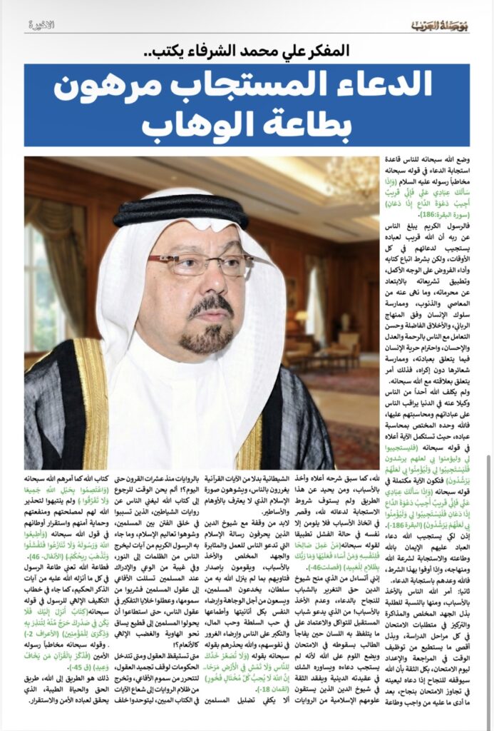 بوصلة العرب تقود الوعي بمقال “الدعاء المستجاب مرهون بطاعة الوهاب” للمفكر علي محمد الشرفاء الحمادي