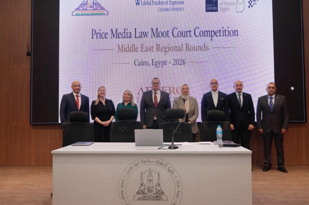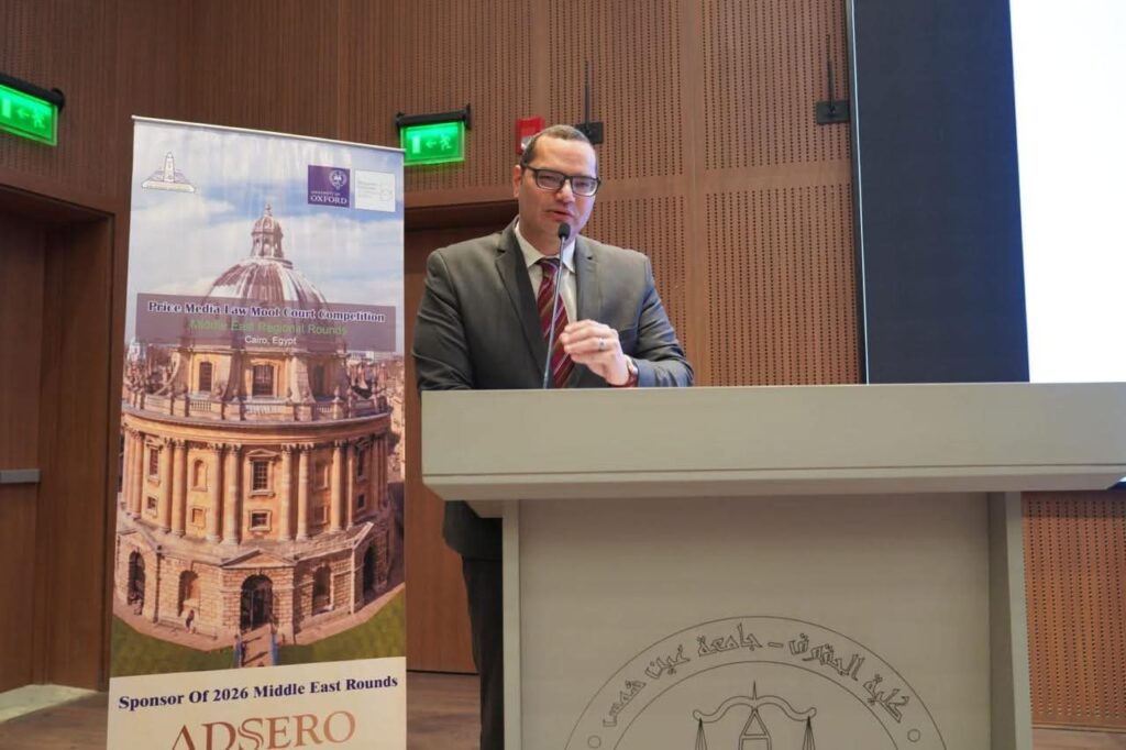 افتتح الأستاذ الدكتور محمد ضياء زين العابدين، رئيس الجامعة، فعاليات جولة الشرق الأوسط لمسابقة “أكسفورد برايس” (Oxford Price Media Moot Court) الدولية للمحاكم الصورية في مجال قانون الإعلام، وذلك خلال الفترة من 1 إلى 4 فبراير 2026. والتي تستضيفها كلية الحقوق بجامعة عين شمس،