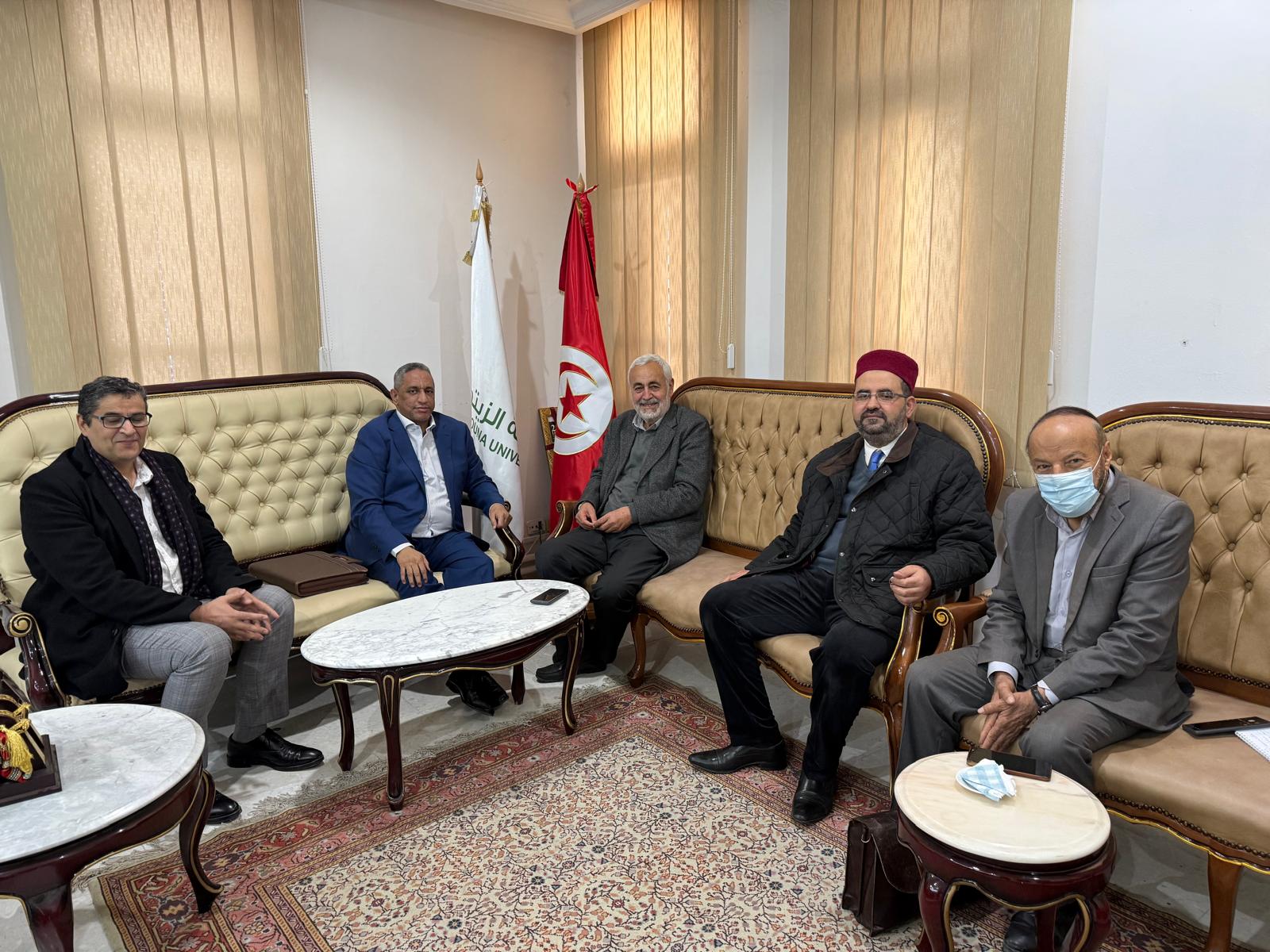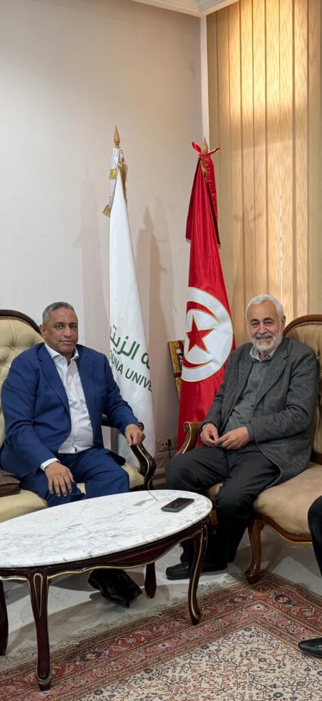 استقبل الأستاذ الدكتور عبد اللطيف بوعزيزي، رئيس جامعة الزيتونة، وفد مؤسسة رسالة السلام، برئاسة الحاج محمد الأمين، مسؤول المؤسسة في إسبانيا، في لقاء رسمي عكس عمق العلاقات الأكاديمية والانفتاح الثقافي بين الجانبين.