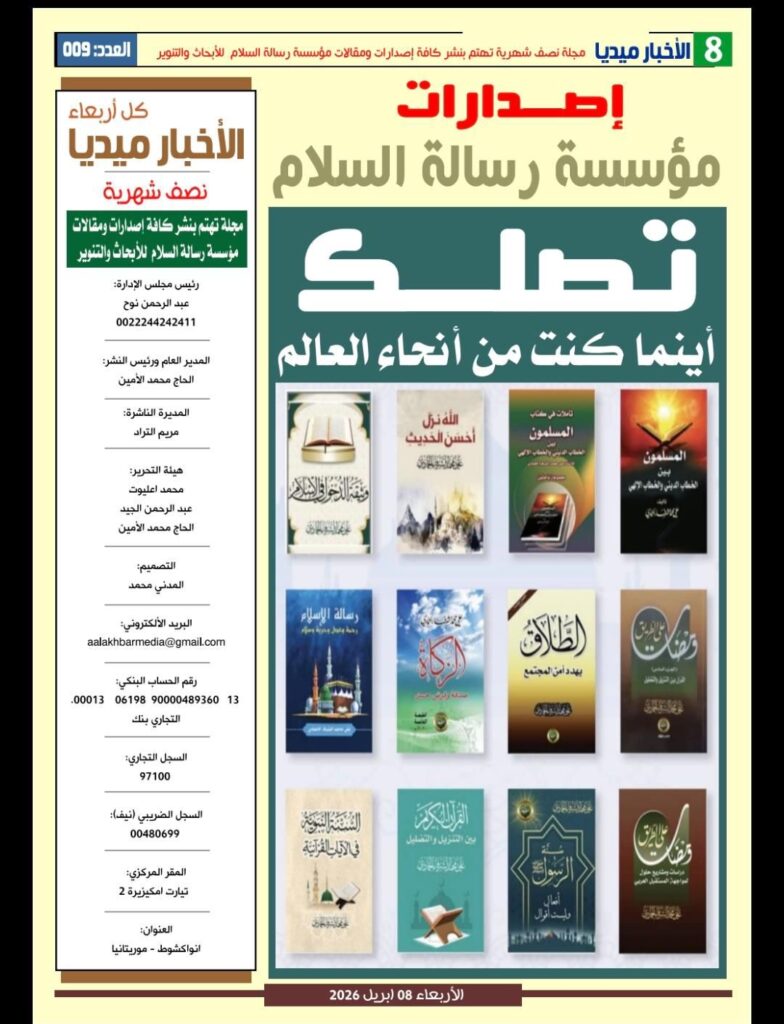 صدر العدد الجديد من مجلة “الأخبار ميديا” التى تصدر فى موريتانيا وتتضمن تغطية لأنشطة مؤسسة رسالة السلام