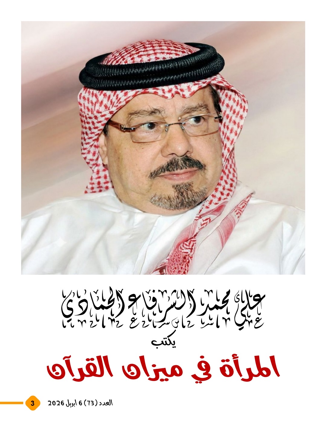 تصدر العدد مقال رئيسي للمفكر العربي الأستاذ علي محمد الشرفاء الحمادي بعنوان «المرأة في ميزان القرآن»، إلى جانب مجموعة من المقالات التي تناقش الفكرة نفسها من زوايا متعددة، وتلتقي جميعها مع الطرح الرئيسي في الدفاع عن كرامة المرأة، وإنصافها، وإعادة الاعتبار للأسرة بوصفها نواة الاستقرار الاجتماعي والإنساني.