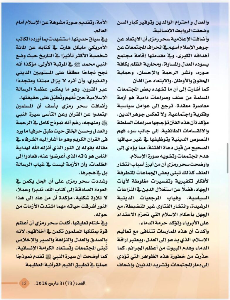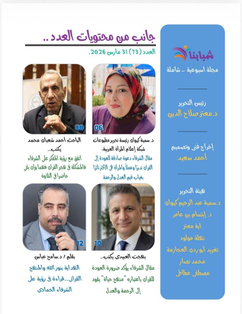 صدر اليوم الثلاثاء 31 مارس 2026 العدد الجديد من مجلة شبابنا التى تصدر عن مؤسسة رسالة السلام العالمية