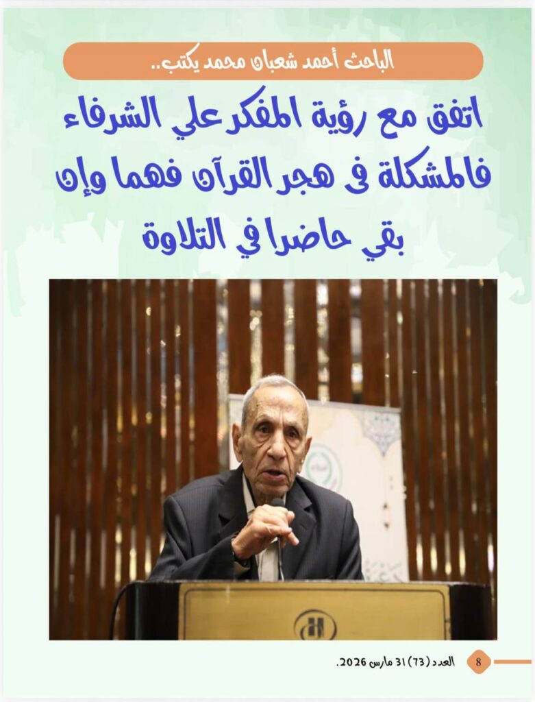 -الباحث أحمد شعبان محمد يكتب..اتفق مع رؤية المفكر على الشرفاء فالمشكلة فى هجر القرآن فهما وإن بقى حاضرا في التلاوة