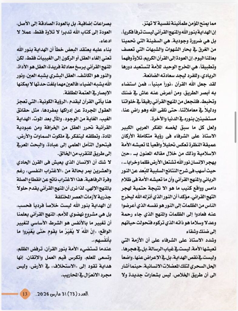 -الهداية بنور الله والمنهج القرآنى ..قراءة فى رؤية على الشرفاء الحمادى