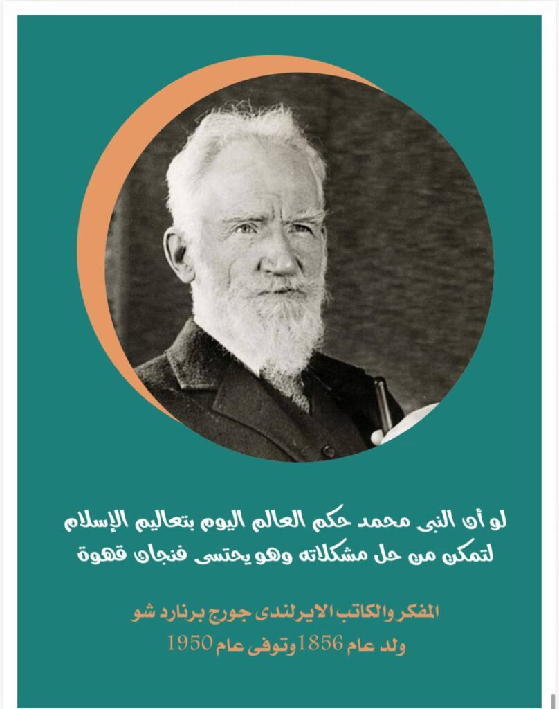 “لو أن النبى محمد حكم العالم اليوم بتعاليم الإسلام لتمكن من حل مشكلاته وهو يحتسى فنجان قهوة ”