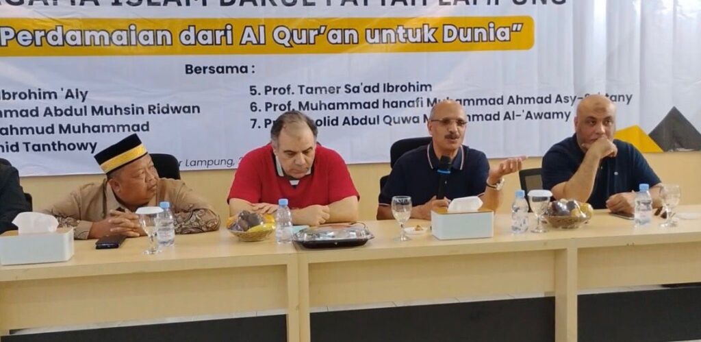 جاء ذلك خلال فاعليات ندوة الضيف الزائر والتي انعقدت وسط طلاب الجامعة بحضور وفد مؤسسة رسالة السلام العالمية فعال، والتي استضافتها جامعة دار الفتح بمدينة لامبونج، تحت عنوان “رسالة سلام من القرآن إلى العالم”، وسط حضور طلابي واسع من طلاب وطالبات، خاصة الدارسين للغة العربية.