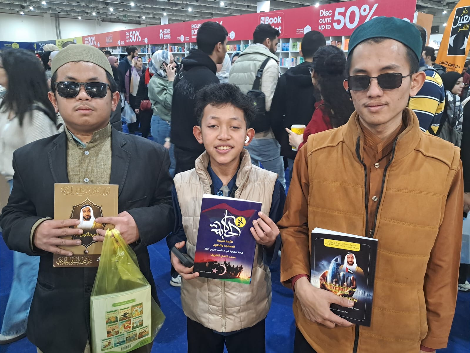 وفد من طلاب تايلاند الدارسين بالأزهر يزون جناح مركز العرب بمعرض الكتاب ويحصلون على نسخ من مؤلفات الشرفاء الحمادي